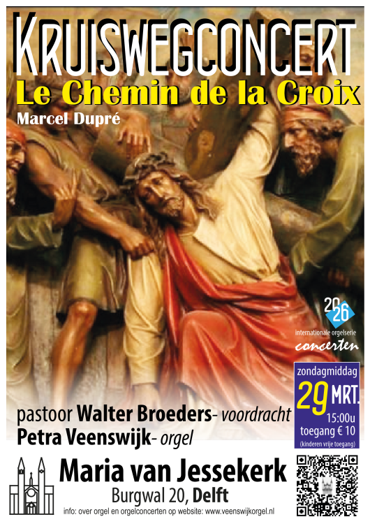 Op zondag 29 maart (Palmzondag) vormt de Maria van Jessekerk in Delft het decor voor een bijzonder kruiswegconcert, waarin muziek, woord en beeld samensmelten tot één geheel.